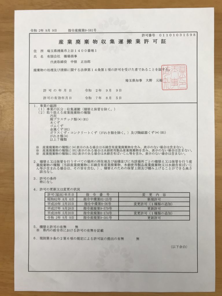 お客様が排出したいごみについて、収集業者が埼玉県の産業廃棄物処理業者、収集運搬業者の許可を持っているか確認を行ってください。