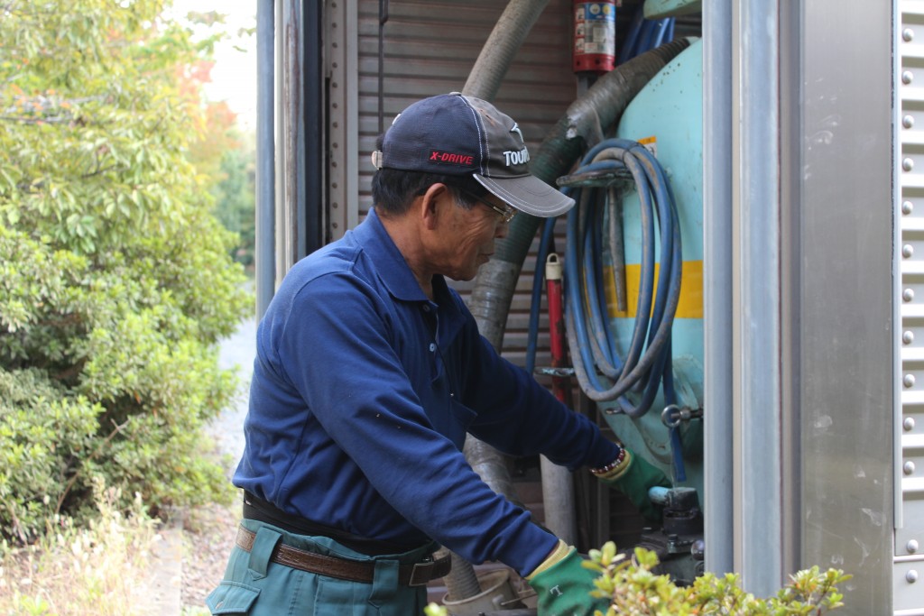 浄化槽に流れ込んだ汚水は、沈殿・浮上といった物理作用と微生物の働きによる生物作用によって浄化されますが、この過程で必ず汚泥やスカム といった泥の固まりが生じます。これらがたまりすぎると浄化槽の機能に支障をきたし、処理が不十分になったり、悪臭の原因に なったりします。そこでスカムや汚泥を槽外へ引き抜き、附属装置や機械類を洗浄したり、掃除する作業が必要です。
